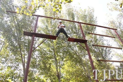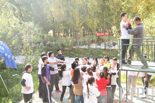 训练活动开始之前,全体学员分成勇士队、宙斯神盾队、一二一六队、victory队、WE队五个小组。分组之后,学员们相继开展了信任背摔、合力过桥、穿越电网、翻越毕业墙等训练项目。整个训练过程中,学员们热情激昂,积极参与,团结协作,展现了奋发拼搏的良好风貌。