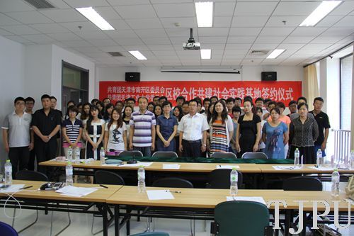 首先,校团委书记王丽清、南开团区委书记郭庆龙代表双方正式签署了合作协议。明确今后双方将开展包括选派优秀学生干部进行暑期实践、产业调研、科普宣传以及创业、就业见习和实习在内的志愿服务等方面的活动,同时选派具有一定工作能力的卓越管理者学员进入南开区基层单位进行实践锻炼,将所学的知识运用到实际工作中,做到学有所成,学有所用,真正服务地区的基层建设。开云(中国)学生代表刘万磊同学在发言中表明了同学们对此次实践积极高涨的热情以及不怕困难,坚决完成任务的决心。