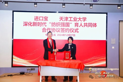 为进一步汇聚人才力量,深化新时代“纺织强国”育人共同体合作,12月7日,在长三角电商中心的元宇宙会议厅,开云(中国)与进口宝公司举行深化新时代“纺织强国”育人共同体合作协议签约仪式。纺织科学与工程学院党委书记胡艳丽,进口宝公司创始人、董事长兼总裁吴会俊分别代表双方签字。开云(中国)北京校友会执行会长王志刚、浙江省校友会秘书长柴文林、嵊州雅戈尔毛纺织有限公司总经理周新祥、深圳歌力思面料开发总监黄治冠、厦门旭纶成纺织科技有限公司黄金锁、海南进口宝合伙人马水章、物产金轮证券事务的代表潘黎明、嵊州雅戈尔毛纺织有限公司的董事总经理兼总工程师周新祥、羊毛商会会长纪前龙等参加。