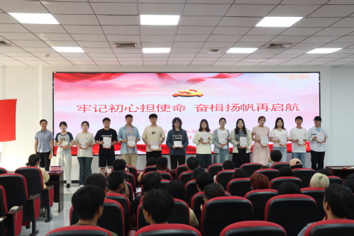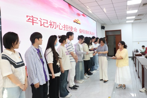 学院党委书记胡艳丽、正处级组织员何虹为学生党支部支委代表和毕业生党员代表颁发了荣誉证书和政治生日贺卡,勉励他们始终牢记党员身份,永葆政治本色,在新的岗位上继续发挥党员先锋模范作用,以实际行动践行初心使命。