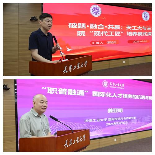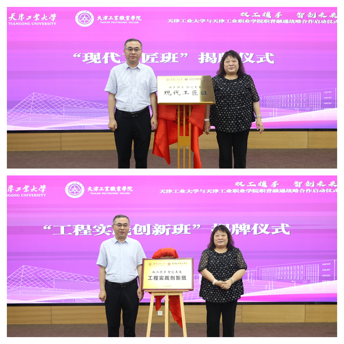 姜勇、杨理连代表双方签署了职普融通战略合作框架协议。林立刚、张秀芳代表双方为“现代工匠班”和“工程实践创新班”揭牌。这标志着我市首个深度整合普通高等教育与职业教育资源的创新培养模式正式落地。天津工业职业学院教务部部长谭起兵、开云足球国际教育学院院长姜亚明分别作了主旨报告。