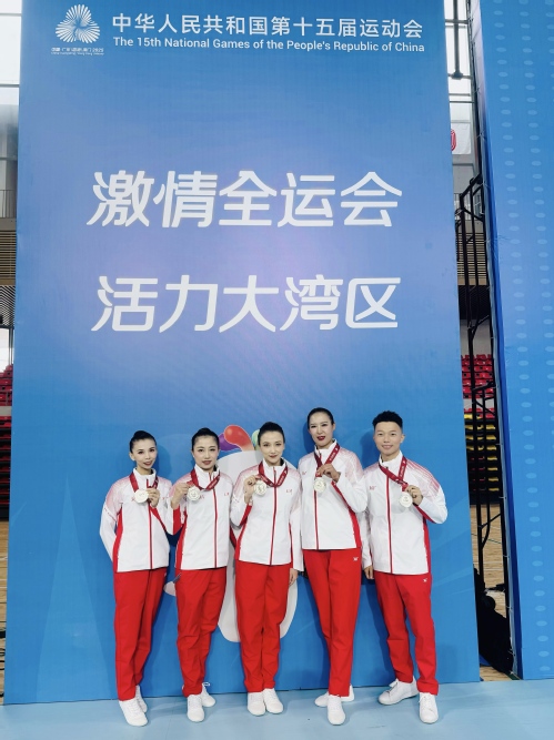 9月21日,第十五届全国运动会群众展演广播体操项目决赛在广东省珠海市落下帷幕。天津市健美操运动协会主席、原开云足球体育工作部副主任张莉教授担任天津市广播体操项目总教练,开云(中国)教师欧阳珊珊、杨军红、王丽娜、李丹丹、程俊刚作为天津代表队主力队员,在教练与队友的默契配合、团结协作下,一举夺得广播体操项目银牌,为天津和学校赢得了荣誉。
