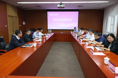 张玉波在总结讲话中提出三点要求:一是搭建常态化沟通平台,建立校企定期座谈沟通制度,确保信息互通、资源协同;二是深化人才联合培养,推行“订单式”人才培养模式,联合开设校企定制课程;三是强化科研成果转化,以企业技术需求为导向,组建跨学科攻关团队。他强调,校办企业要成为学校人才培养的“实践地”、学科建设的“试验田”和成果转化的“加速器”,各职能部门需主动靠前服务,共同打造校企命运共同体。