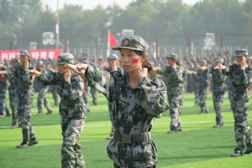 汇报大会在庄严的升国旗仪式中拉开序幕。20个分列式方队以整齐划一的步伐、高亢嘹亮的口号依次通过主席台,充分展现了天工学子朝气蓬勃、奋发向上的精神风貌。在军事技能汇报展示中,女子匕首术刚柔并济,一招一式诠释巾帼不让须眉的飒爽英姿;战术方阵持枪匍匐、翻越障碍,班组协同战术演示将汇报大会推向高潮,赢得现场师生热烈掌声;男子刺杀操方阵由500名2025级新生组成,动作刚猛有力、气势如虹,突刺格挡间彰显敢打必胜的坚定信念。