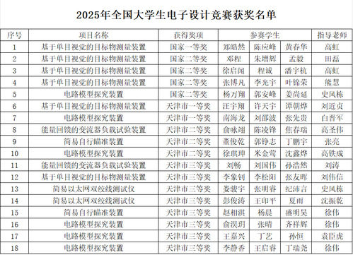 本届全国大学生电子设计竞赛取得的优异成绩,既是学校深耕新工科建设、践行“以赛促学、以赛促创、以赛促教”理念的生动实践,也是天工学子创新素养与实践能力持续提升的有力佐证。学校将坚持以学科竞赛为重要牵引,持续完善“课程-竞赛-项目-产业”四位一体的融通育人机制,全面激发学生的创新潜能,培养更多拔尖创新人才,为服务国家战略与地方经济社会发展贡献智慧与力量。